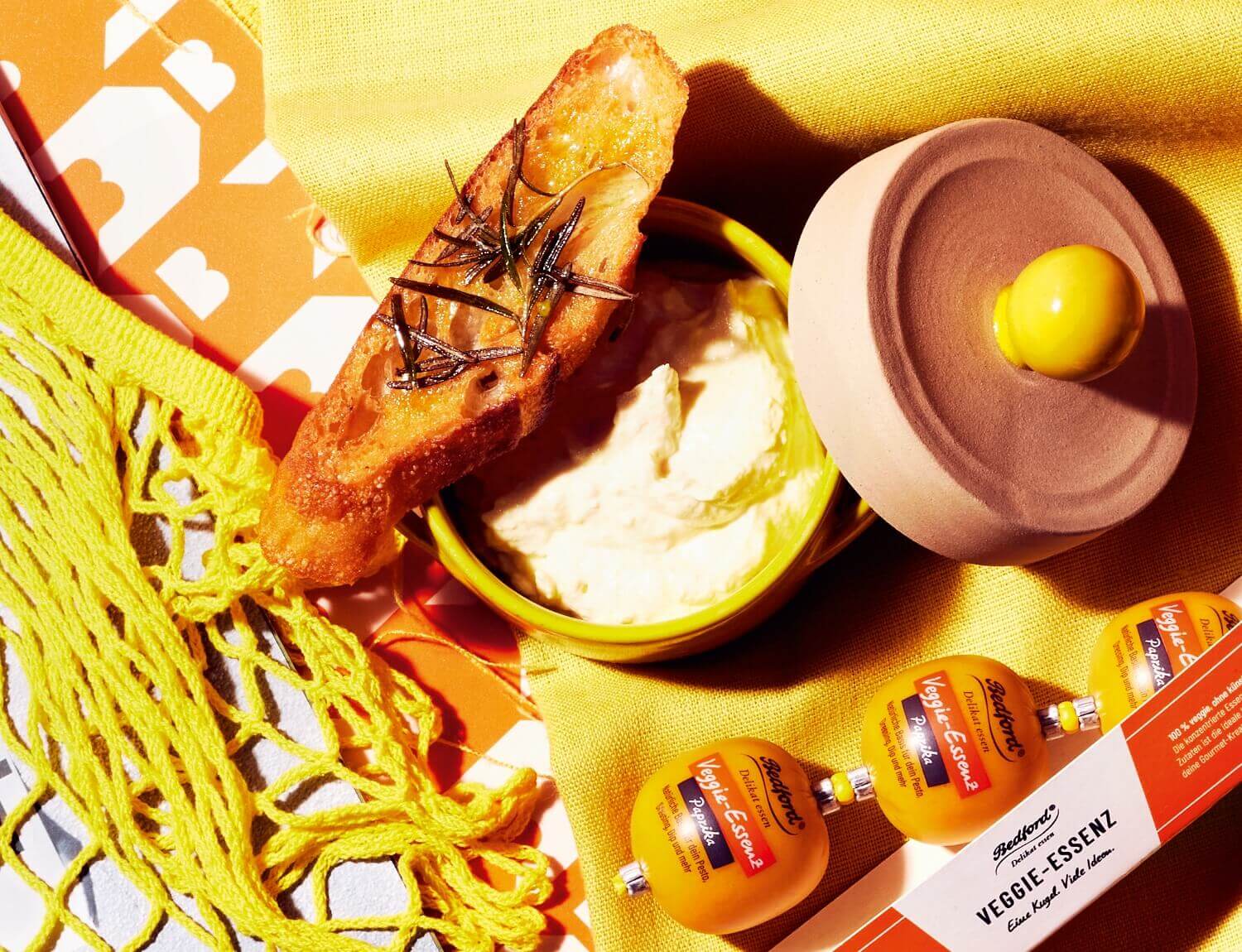 Bis es poppt: Die Paprika Essenz mit einem Messer oder einer Schere aufschneiden und mit Ricotta vermengen.